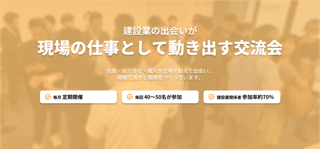 建設業に関わる人が、業種や立場を超えてつながる交流会です。